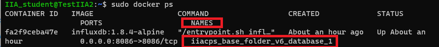 En primer lugar, deberéis identificar el nombre del contenedor de Influxdb, como se indica en la siguiente captura: