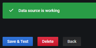 Podéis validar que Grafana ha detectado la base de datos haciendo clic en el botón Save & Test. Un resultado satisfactorio debería devolver el siguiente mensaje: