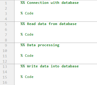 Se recomienda que generéis un script con cuatro secciones, separándolas utilizando los caracteres “%%”, como podéis ver en la siguiente captura: