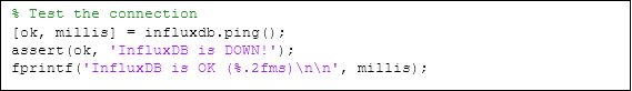 1. Confirmad que recibís el mensaje ‘InfluxDB is OK’ en la ventana de comandos de MATLAB Online.