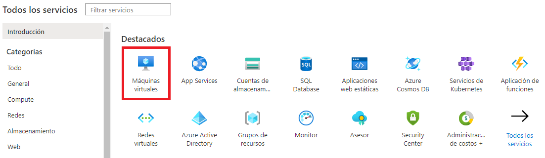 In Azure, you will need to access your virtual machine. You can do it through the “Virtual machines” icon, highlighted in the following screenshot.