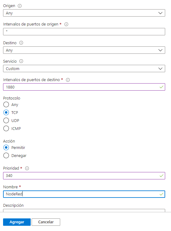 To access Node-RED or Grafana you will use the port of each one, the one you have configured in the input port rules of your virtual machine.