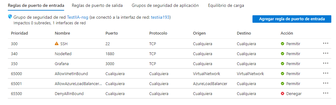 Although it is not necessary to do so, you can also generate a rule with the InfluxDB port, which is 8086. In this way, you will be able to communicate from the browser with the database that you will create in InfluxDB of the virtual machine.